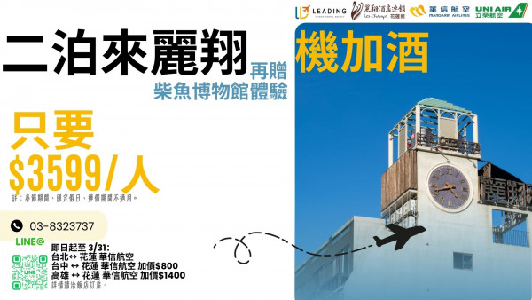 二、住兩晚・機加酒花蓮小旅行(送柴魚博物館體驗)